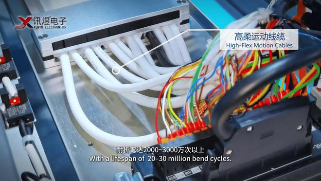 訊煜電子專注于無塵拖鏈、潔凈高柔運(yùn)動排線、真空線纜、潔凈線纜、高柔運(yùn)動線纜等產(chǎn)品的研發(fā)和生產(chǎn),為了確保產(chǎn)品的穩(wěn)定可靠,每款產(chǎn)品都要經(jīng)過自主研發(fā)的耐折彎測試機(jī)進(jìn)行數(shù)千萬次高強(qiáng)度耐折彎測試,鑄就高品質(zhì)、可信賴產(chǎn)品。